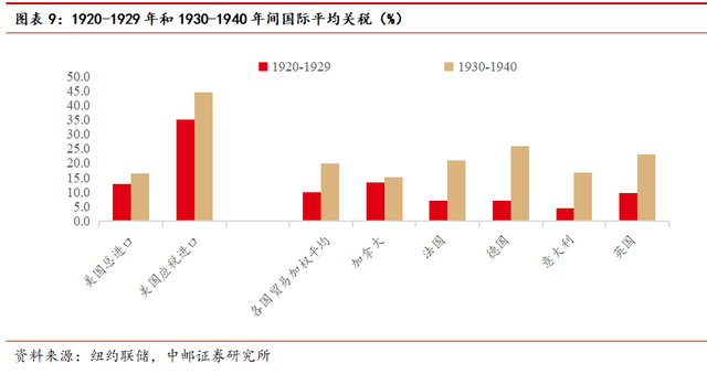 第一次世界大和后,美国经济繁荣,欧洲也从烽火中苏醒。1920年代,全球产能面对过剩,从义情感正在美国敏捷延伸。1922年,党通过《福特尼-麦克坎伯关税法案》,将平均关税率提高至约40%,并授权总统可按照国外出产成本调整关税幅度达50%。高关税正在1920年代逐步成为常态,部门工业品关税以至创下汗青新高。这一法案虽然激发了部门欧洲国度的报仇,但范畴不大,并且正在美国经济繁荣的怒潮中,其负面影响并未当即。不外,因为难以通过出口赔取美元,法案加剧了欧洲和平债权的坚苦。到1920年代后期,美国高关税政策为全球范畴内的从义兴起埋下现患。