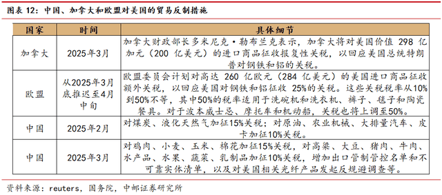 胡佛失败的汗青经验表白,从义商业政策往往会激发普遍的国际报仇。目前,特朗普的关税政策已激发多国反制,虽然大大都经济体的反映相对胁制:欧盟将报仇性关税的生效时间从3月底推迟至4月中旬;中国步履敏捷,但比拟于美国的全面加征关税,中朴直在商品选择上精准发力,本月发布的报仇性关税仅对约220亿美元美国商品征收11%现实额外关税;英国虽然暗示“所有选项都正在考虑之中”,但目前还没有颁布发表具体的报仇办法。
